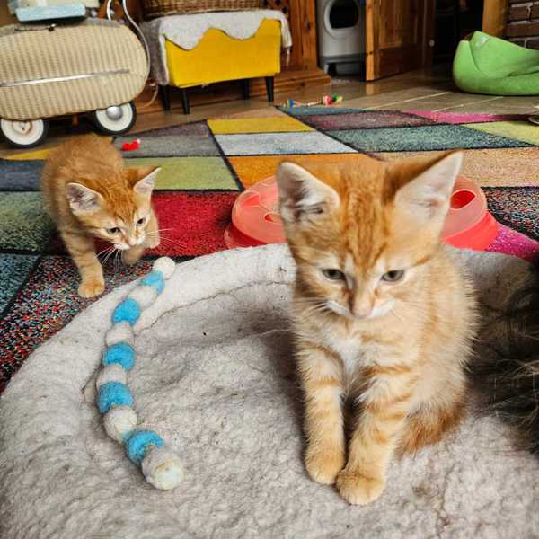 Sie wachsen in der Pflegestelle mit anderen Katzen, Hunden und Kindern auf. Altersgerecht hängen sie ihre Nase überall rein. Man kann gar nicht so viele Hände haben, wie man bräuchte.