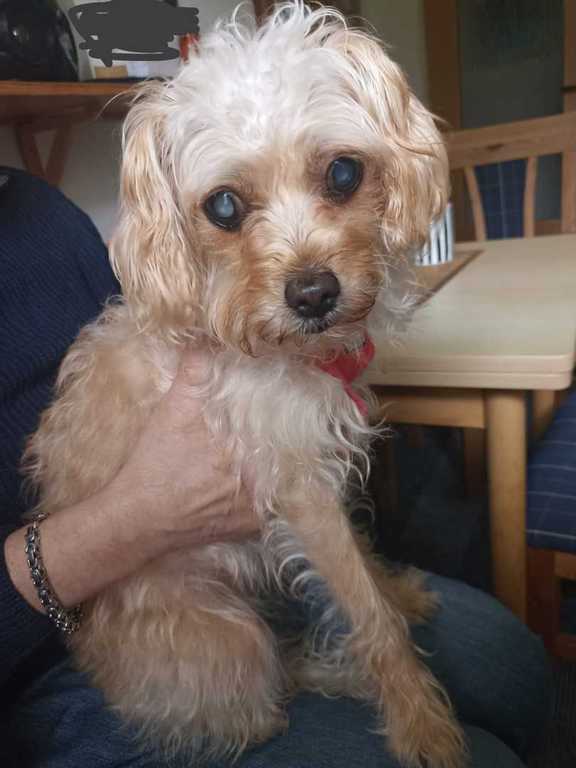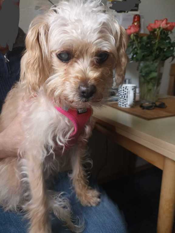 Ich heiße Blondie und bin eine kleinere cremefarbene Hundedame (ca. 35 cm) und 3 1/2 Jahre jung.
