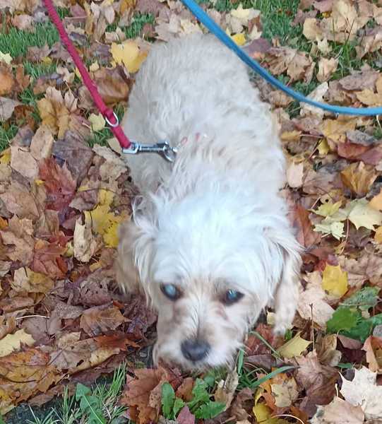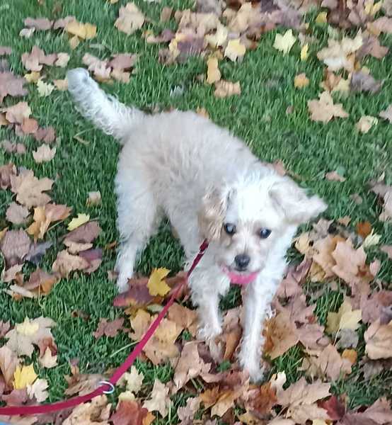 Ich heiße Blondie und bin eine kleinere cremefarbene Hundedame (ca. 35 cm) und 3 1/2 Jahre jung.